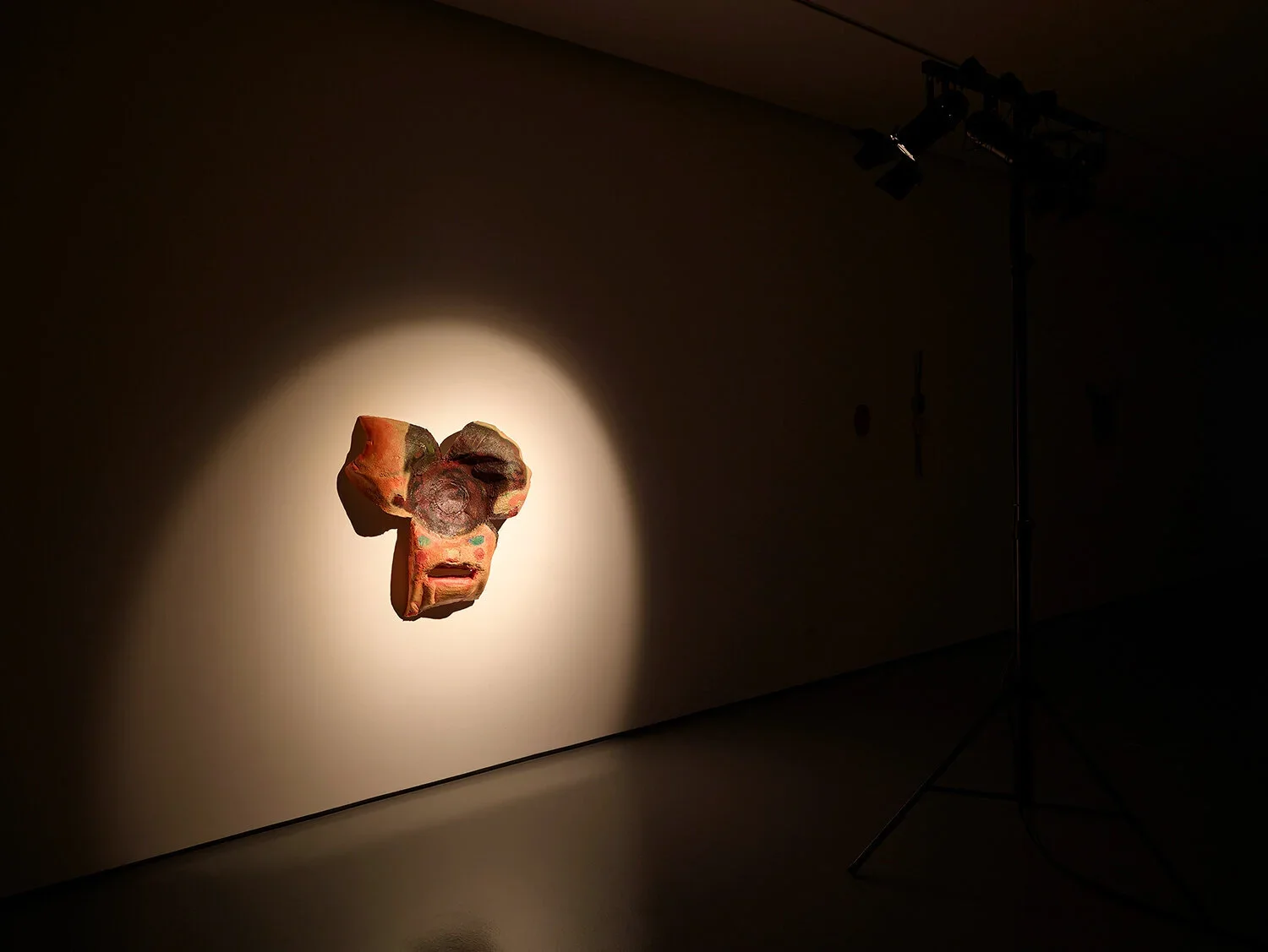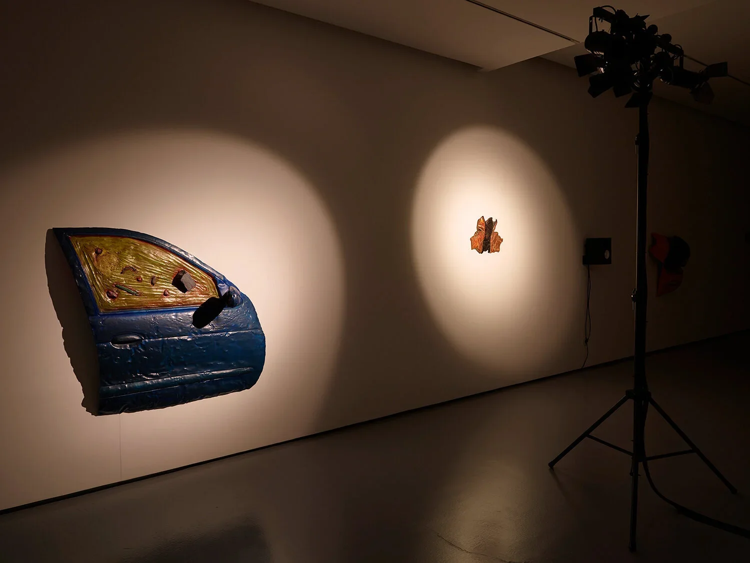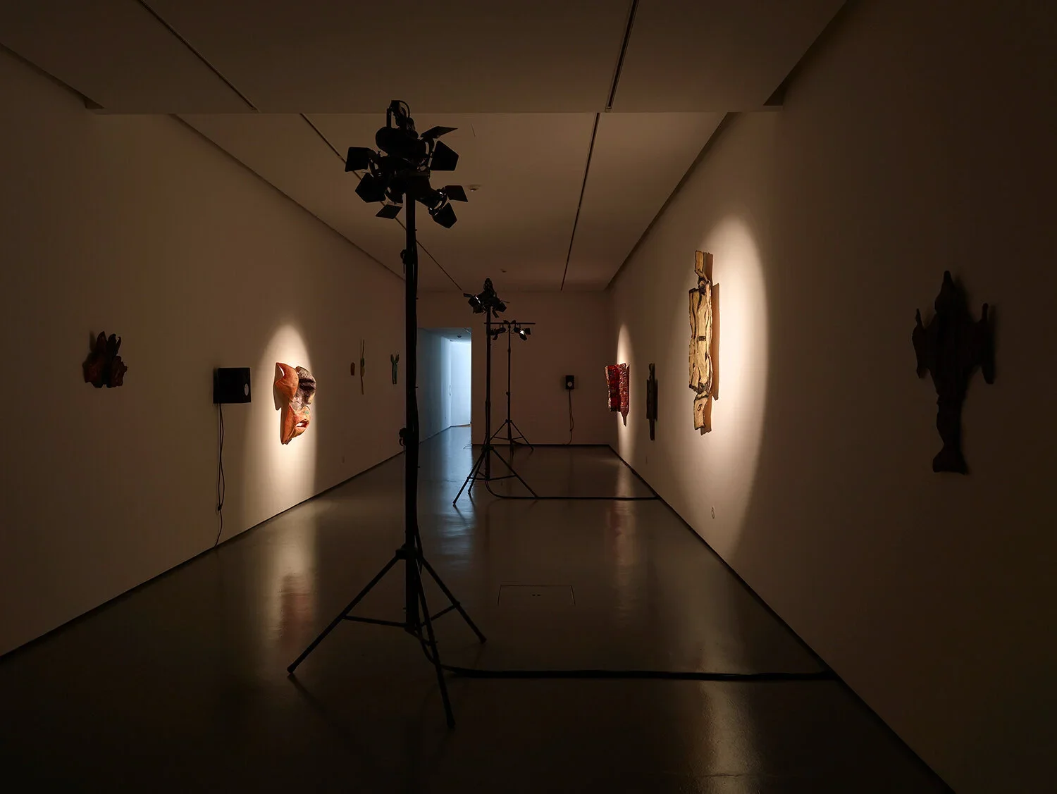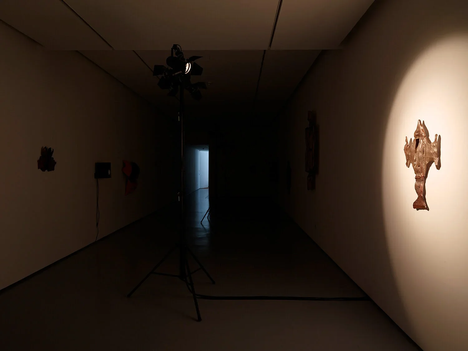 As an installation, “Cavazaque Piu Piu” gathers a group of painted fibreglass sculptures, lit by a synchronised lighting system, alongside a recorded monologue in which one voice splits into several characters.